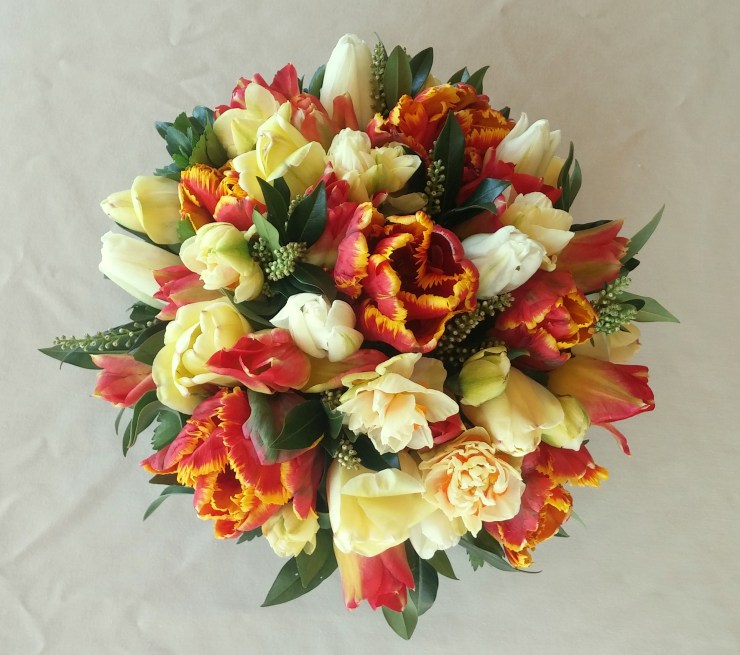 I created countless table centerpieces while working at High Glen Gardens. Whether for parties or everyday decoration, arrangements that looked beautiful from any angle were my most common project. The pieces pictured here were created weekly for the breakfast table in the house, were given as gifts, or displayed at events. Also see Hoe-Down Barn Party and Parties and Picnics for other centerpieces.