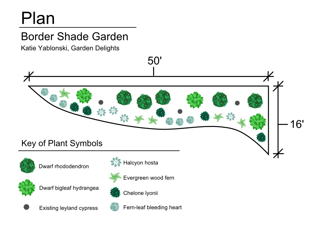 Border Shade Garden A luscious shade garden created to fill a bare area under a row of leyland cypress trees. Image of current landscape to be designed Digital rendering created with Realtime Landscaping Photo software Related
